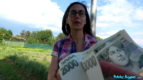 When I saw slim beauty Ashely Ocean walking nearby, I approached her swiftly. I asked Ashely if she knew where the local lake was located, but I knew full well it was over 2 km away. Ashley confirmed the lake's distance, so to get her talking I asked her if she could lead me there. She was on her way to see her boyfriend so she was apprehensive, but when I offered her 2000 crowns to take me, she was a little more receptive. I next asked her if she would flash me for 4000 total, and she showed me her gorgeous boobs! This made me very horny, so for 10k total, Ashely agreed to come into the woods and give me a blowjob. One thing led to another and she was bouncing her pussy on my cock until I could cum on her ass! - "Cash convinces slim beauty to fuck" #publicagent #fakehub