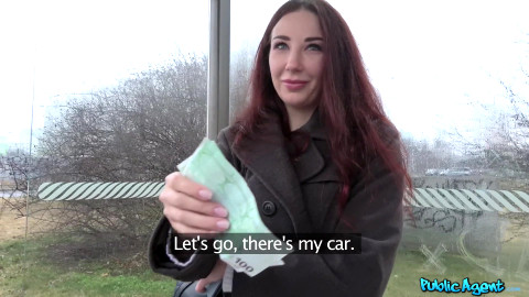 Violetta was waiting for the bus, a beautiful redheaded Russian with natural tits. I asked her if she had two minutes for a small interview. I told Violetta I was a casting agent from a small modeling job, and how she could make a lot of money for posing for bikini and naked pictures. I also told her she had beautiful eyes, but that part was actually true. I offered her money for a quick casting and she liked money, so we got into my car and begun to drive. As I drove, Violetta flashed me her tits and showed me her big ass. It was then I offered her 500 euro to suck my cock. Those beautiful eyes lit up, so I parked and she blew me. I fucked her hard in the backseat, then she swallowed my cum. - "Innocent lady with natural tits" #publicagent #fakehub