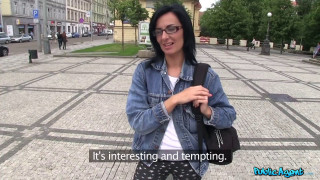 Dark hair and wearing glasses, I spotted Simone walking across the square in the City. I immediately approached her and told her that she should seriously think about a career in modelling. I told her that I was from a new modelling agency and I would be able to get her plenty of modelling work. I made her do a few modelling poses on the street for me, before I told her that I needed to see her figure in just her underwear. We found a quiet area and she was happy to pull down her trousers. My dick was getting hard so I pulled out a bundle of cash and told her that she could have it all if she let me have sex with her. - "Stranger Promises Dark Haired Beauty A Modeling Career For Sex" #publicagent #fakehub
