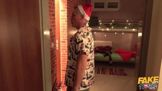 It seems that Steve Q's name is on the naughty list this year when he is visited by a ghostly spectre from the past, who delivers a message telling Steve to stop fucking the backpackers! However, when they catch sight of a sexy blonde in the shower with a butt plug embedded deep inside her hole, the horny duo takes turns feeding their candy canes to the total nymph before stuffing her stocking! After cumming all over her big titties, Steve’s night of passion is not over yet when he is faced with another eerie visitor who wants to scrooge! #fakehostel