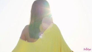 You know those fantasies you have, where you meet some mysterious horny super-babe in the woods, and she pulls off what little she's wearing and teases you until your cock is so hard you could use it to chop a block of wood in half? Well, get yourself ready because today, the beautiful, petite Zelda is going to fulfill this fantasy! In a loose yellow dress, she frolics in nature before she becomes one with nature by getting stark naked and basking in the sun's sweet glow. This gal isn't shy - she shows you every inch of her stunning body right up close. So, go on. Take out your cock and let this outdoorsy cutie rock your world. - ''Wet Sunshine'' #twistys